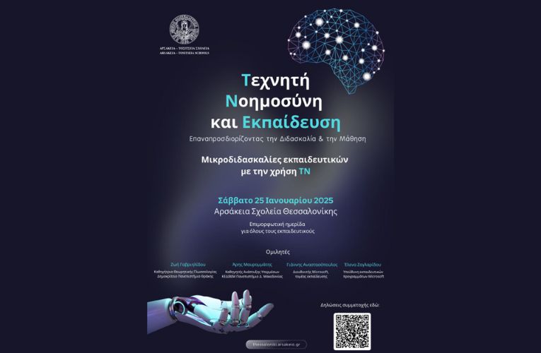 Η Φιλεκπαιδευτική Εταιρεία Αρσάκεια-Τοσίτσεια Σχολεία διοργανώνει ημερίδα με θέμα: “Τεχνητή Νοημοσύνη και Εκπαίδευση – Επαναπροσδιορίζοντας την Διδασκαλία και την Μάθηση”, η οποία θα πραγματοποιηθεί το Σάββατο 25-1-2025, 9:00-15:00 στα Αρσάκεια Σχολεία Θεσσαλονίκης.