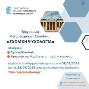 Μέχρι τις 26 Μαΐου 2025 η εκδήλωση ενδιαφέροντος για το Π.Μ.Σ. «Μοντέλα Σχεδιασμού και Ανάπτυξης Εκπαιδευτικών Μονάδων» 2025-2026 8 Απριλίου, 2025
