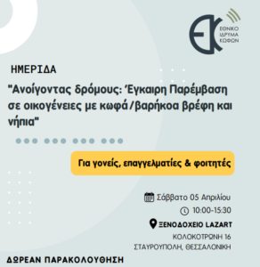 Ημερίδα : «Ανοίγοντας Δρόμους: Έγκαιρη Παρέμβαση για οικογένειες με κωφά/βαρήκοα βρέφη και νήπια» 2 Απριλίου, 2025